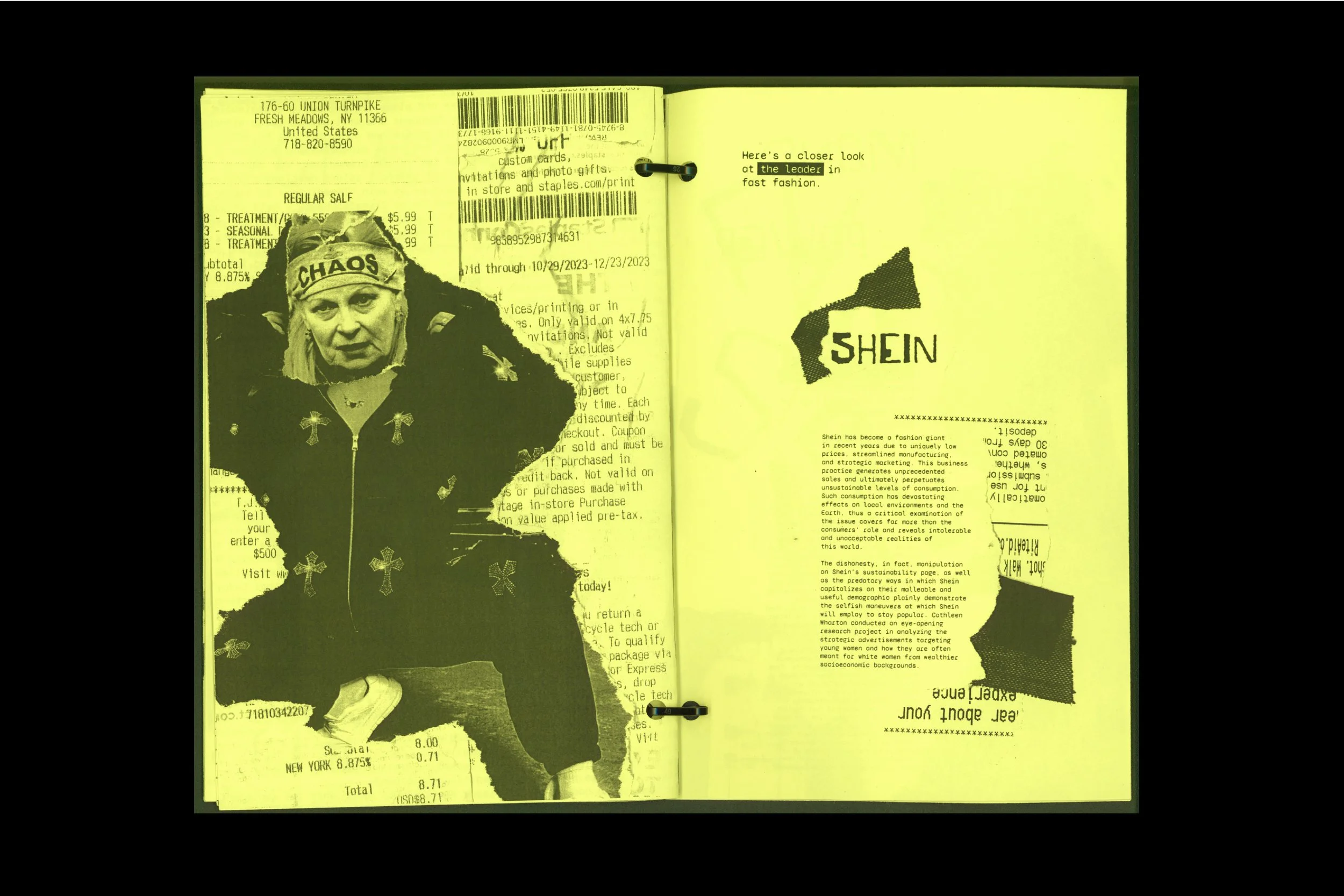 I created this zine by hand-making physical collages for each spread using a mix of images, text, and fabric. Once assembled, I scanned the pages using a Xerox machine —a deliberate choice that aligns with the raw, edgy collage aesthetic of Scraps’ visual identity. This DIY production method not only reinforces the tactile, imperfect feel of the brand, but also generates 90% less waste compared to traditional printing and significantly reduces production costs.